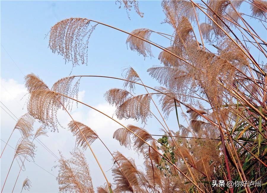 芦苇枝条,悬着松松软软、白白的花絮,跟着阳光一刹呈现出白色,一刹呈现出金色;和成片的狼尾草连在沿途,密密匝匝,苍迷茫茫,随风摇曳,在蓝天白云下,好意思得‘驰魂宕魄’。