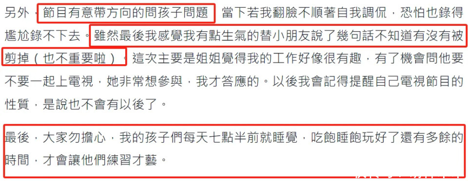 是以,当小S遇上让儿子学才艺并不是为了扮演的姆妈,她一时可能很难清醒,不扼杀会有心态失衡的情况,才会管不住嘴。终末就但愿小S卤莽吸取经历吧,另外,亦然想说,孩子是会师法父母的,提议徐家姐妹齐能多关注自家孩子,免得他们长歪了吧。本文未经授权严禁转载违者必究!","gnid":"967eac254394b4a8b","img_data":[{"flag":2,"img":[{"desc":"","height":626,"title":"","url":"http://p0.img.360kuai.com/t01303da839395dc1a5.jpg","width":829},{"desc":"","height":529,"title":"","url":"http://p0.img.360kuai.com/t01cfc84626f0edf81d.jpg","width":960},{"desc":"","height":"336","title":"","url":"http://p0.img.360kuai.com/t011f926abd6031f120.jpg","width":"960"},{"desc":"","height":545,"title":"","url":"http://p0.img.360kuai.com/t011cd48ba9ae31e9fb.jpg","width":756},{"desc":"","height":"510","title":"","url":"http://p0.img.360kuai.com/t01b05005c4fddb8218.jpg","width":"822"},{"desc":"","height":"446","title":"","url":"http://p0.img.360kuai.com/t01113d472a5abb253c.jpg","width":"710"},{"desc":"","height":"512","title":"","url":"http://p0.img.360kuai.com/t0119ba125cc0a170f7.jpg","width":"710"},{"desc":"","height":"546","title":"","url":"http://p0.img.360kuai.com/t016fff663565f8f304.jpg","width":"701"},{"desc":"","height":"546","title":"","url":"http://p0.img.360kuai.com/t0166b9f773e06d92f4.jpg","width":"846"},{"desc":"","height":"252","title":"","url":"http://p0.img.360kuai.com/t01ed160ddee75ff3a5.jpg","width":"960"},{"desc":"","height":"494","title":"","url":"http://p0.img.360kuai.com/t0129f03baa86c38fbf.jpg","width":"716"},{"desc":"","height":"372","title":"","url":"http://p0.img.360kuai.com/t017ba06abf2cef6456.jpg","width":"960"},{"desc":"","height":"487","title":"","url":"http://p0.img.360kuai.com/t01c30c0d7d525886b9.jpg","width":"936"},{"desc":"","height":"839","title":"","url":"http://p0.img.360kuai.com/t0146448275c45e0a8f.jpg","width":"960"},{"desc":"","height":"470","title":"","url":"http://p0.img.360kuai.com/t019b4f4179fec98fa0.jpg","width":"960"},{"desc":"","height":"149","title":"","url":"http://p0.img.360kuai.com/t01f85af65d3363addc.jpg","width":"960"},{"desc":"","height":"604","title":"","url":"http://p0.img.360kuai.com/t012491791a98ff1018.jpg","width":"836"},{"desc":"","height":"220","title":"","url":"http://p0.img.360kuai.com/t01fe3f74d484812978.jpg","width":"960"},{"desc":"","height":"406","title":"","url":"http://p0.img.360kuai.com/t0114c74a7242f81557.jpg","width":"960"},{"desc":"","height":"537","title":"","url":"http://p0.img.360kuai.com/t015f440b6c41d2e7dd.jpg","width":"844"},{"desc":"","height":"804","title":"","url":"http://p0.img.360kuai.com/t01239603a1f30a4abf.jpg","width":"830"},{"desc":"","height":"534","title":"","url":"http://p0.img.360kuai.com/t01a3b9b26dd136be2e.jpg","width":"764"},{"desc":"","height":"217","title":"","url":"http://p0.img.360kuai.com/t01454f3aadb22155c3.jpg","width":"730"}]}],"original":"1","pat":"mxc,art_src_0,sexf,sex2,sexc,disu_label,fts0,sts0,op50_st","powerby":"cache","pub_time":1711279156000,"pure":"","rawurl":"http://zm.news.so.com/fd6567cb33431e723d33a810ff0eefe5","redirect":0,"rptid":"b497a0c588cd06b3","rss_ext":[],"s":"t","src":"萌神木木","tag":[{"clk":"kfun_1:小s","k":"小s","u":""}],"title":"小S又翻车了!节目当众嘲讽8岁小女孩,言语太过分潜入不良心态","type":"zmt","wapurl":"http://zm.news.so.com/fd6567cb33431e723d33a810ff0eefe5","ytag":"文娱:明星:华语明星","zmt":{"brand":{},"cert":"优质文娱界限创作家","desc":"跟踪推敲文娱热门事件,深度挖掘贵圈资讯","fans_num":179680,"id":"931305323","is_brand":"0","name":"萌神木木","new_verify":"7","pic":"https://p0.img.360kuai.com/t01fd9d1216204a4f76.jpg","real":1,"textimg":"https://p9.img.360kuai.com/bl/0_3/t017c4d51e87f46986f.png","verify":"0"},"zmt_status":0}","errmsg":"","errno":0}