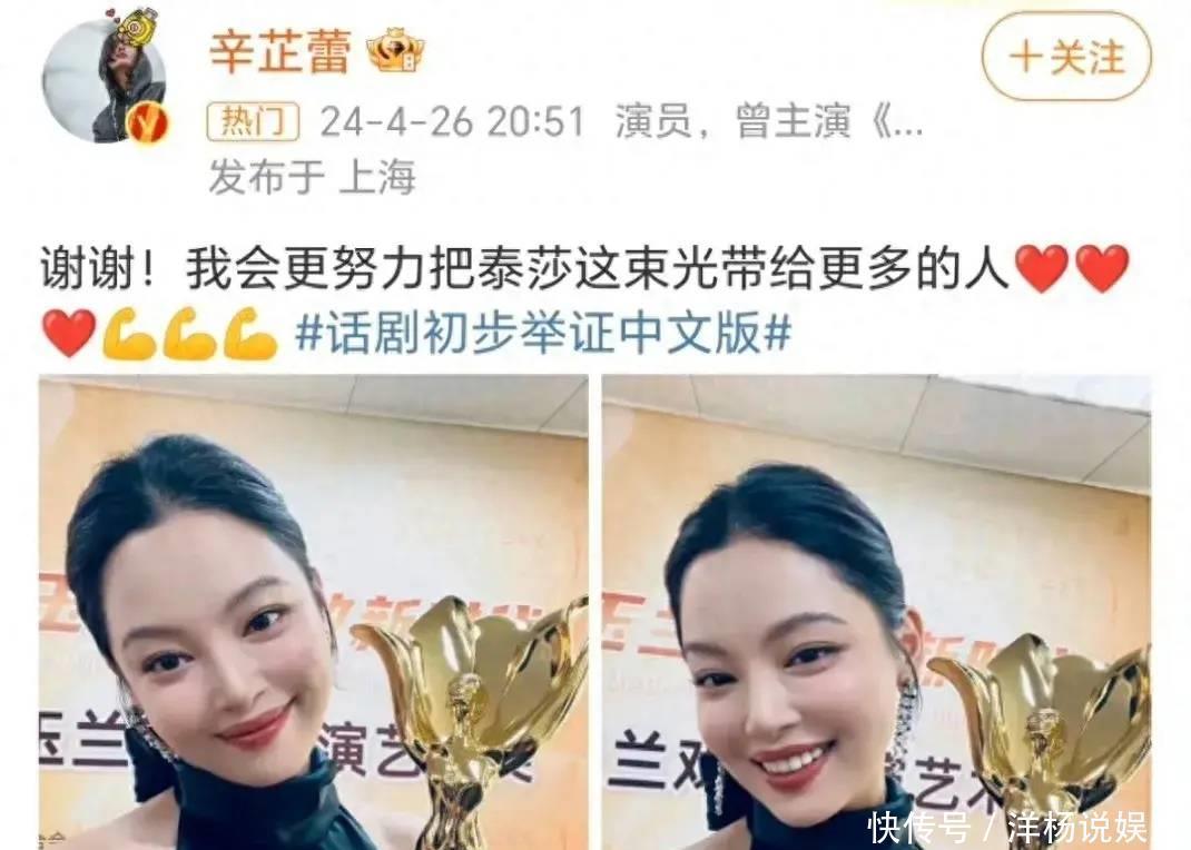 这是她第一次扮演话剧就取得的惊东谈主收获!她的辛勤和追求无缺险些太让东谈主佩服了!恭喜演员辛芷蕾啊啊啊!